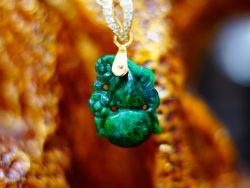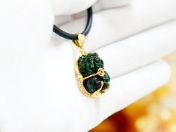 Mặt Dây Hồ Ly Đồng Điếu Cửu Vận – Cẩm Thạch Thiên Nhiên Bọc Vàng 10K VIP