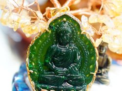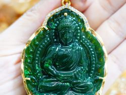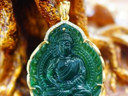 ✔ Hình tượng Phật được chạm khắc thủ công tinh xảo từ ngọc phỉ thúy thiên nhiên, nổi bật với sắc xanh lục đậm huyền bí – tượng trưng cho tĩnh lặng sâu sắc, sinh khí bền bỉ và tinh thần thấu hiểu. Mỗi đường khắc là một dòng chảy năng lượng đi qua tay nghệ nhân, khắc hoạ thần sắc trầm an và khôn ngoan của đức Phật.
