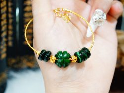 ✔ Bi vàng chế tác thủ công 18K như những điểm tụ khí – dẫn đường và khoá giữ phúc khí trong chuỗi. Mỗi bi là một nốt sáng hài hoà giữa ngọc và vàng – giữa tĩnh và động – giữa nhẹ nhàng và sang trọng. Dây kiềng vàng uốn dẻo ôm tay, tạo nên một tổng thể thanh lịch, nhưng vẫn đầy chiều sâu phong thủy.