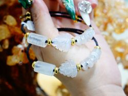 Một sự kết hợp đầy dụng ý phong thủy: Hồ Ly – Lu Thống – Đồng Điếu hội tụ trên nền đá Tourmaline trắng trong, mang lại năng lượng tịnh hóa, an tâm và dẫn khí cát lành. Chiếc vòng không đơn thuần là trang sức – mà là lá bùa thanh lọc năng lượng, thu hút tình duyên hòa hợp, tài lộc lưu thông và tư duy khai sáng.