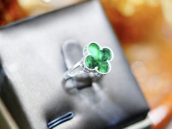 Nhẫn phong thủy cỏ 4 lá bạc đính cẩm thạch thiên nhiên – hút may mắn, tài lộc và tình duyên
